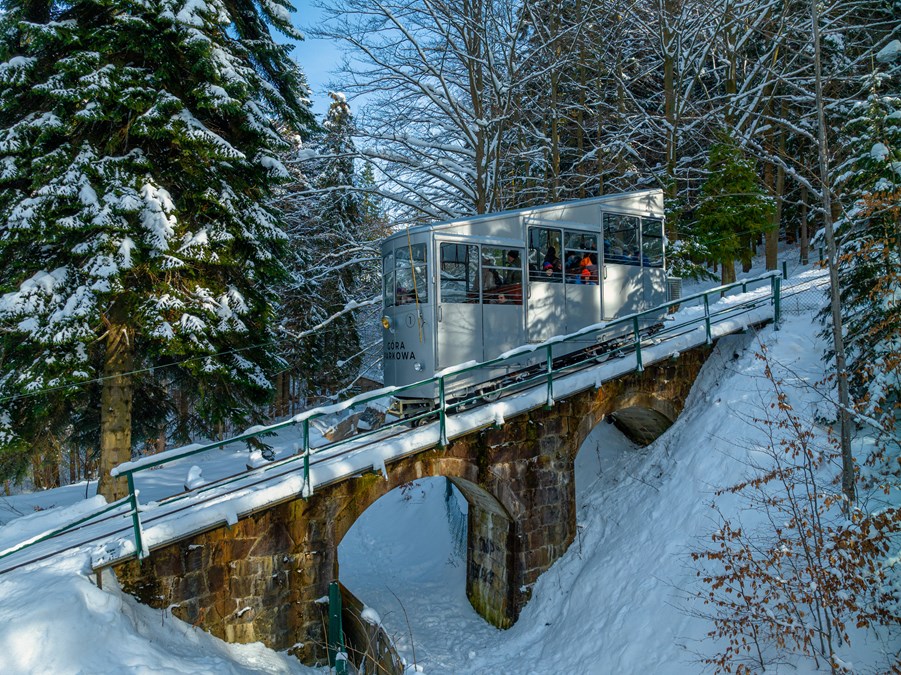 After all, there is Poland’s oldest cableway going to Góra Parkowa, which, despite having undergone general renovation, retained its pre-war character. Riding it takes you into the ambience of the interwar period in Krynica Zdroj. See for yourself!